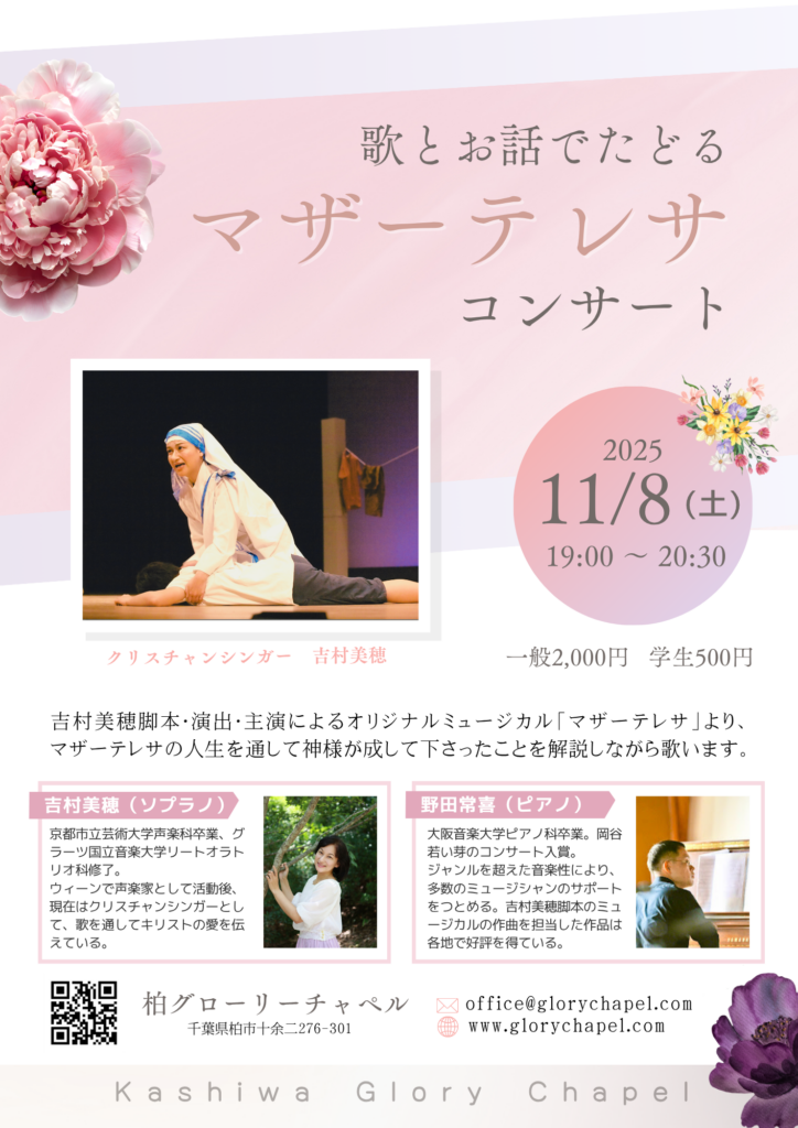 - 場所: 柏グローリーチャペル2階礼拝堂