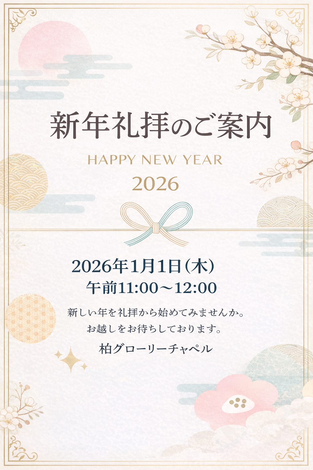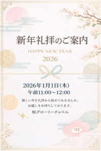 - 場所: 柏グローリーチャペル2階礼拝堂