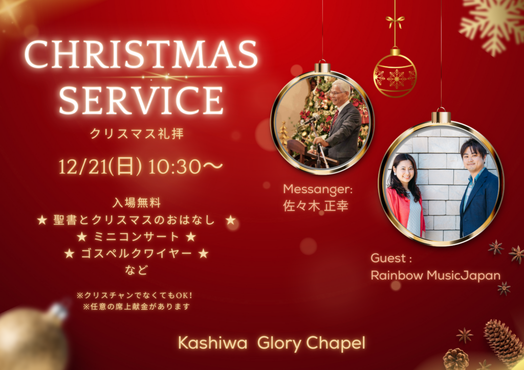 本番 クリスマス礼拝@柏グローリーチャペル 12/21(日)10:30~(9:30集合予定)